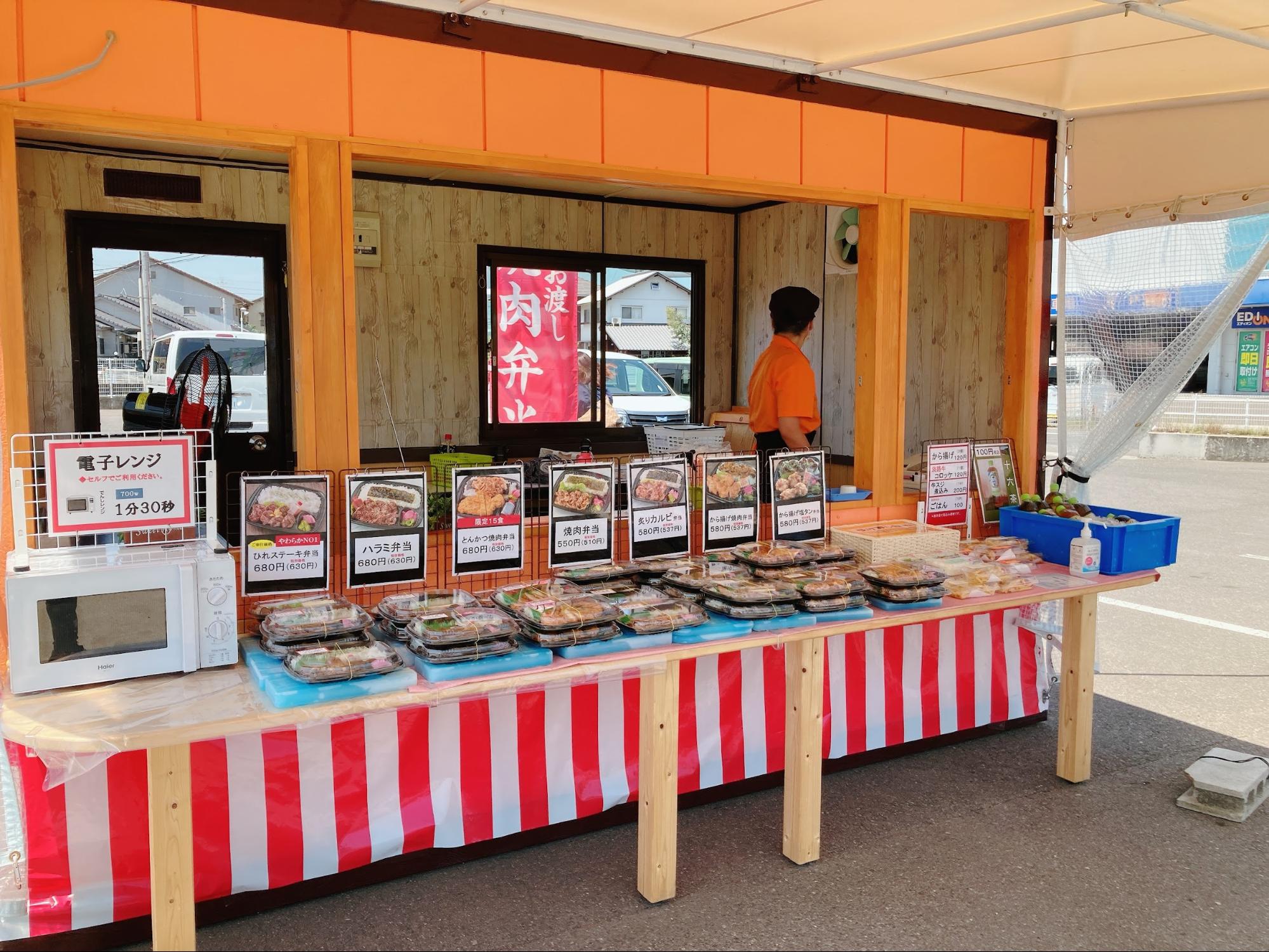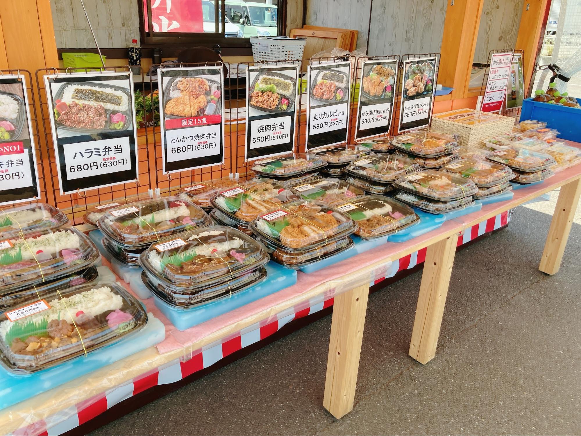 焼肉食べ放題のお店ですが、お昼の11時~13時の間、敷地内駐車場にて弁当がテイクアウトできます。
