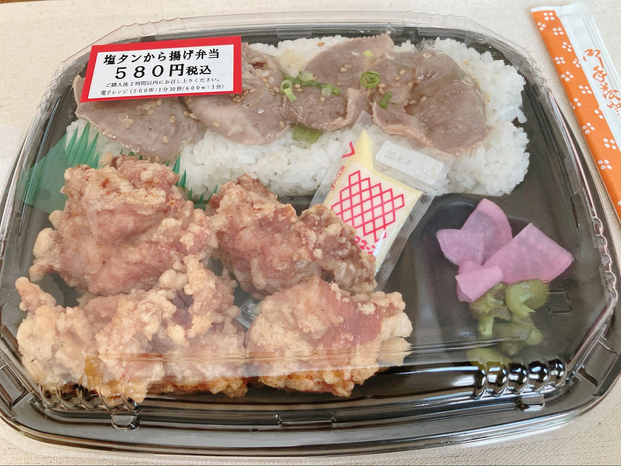 - 塩タンから揚げ弁当(税込580円)