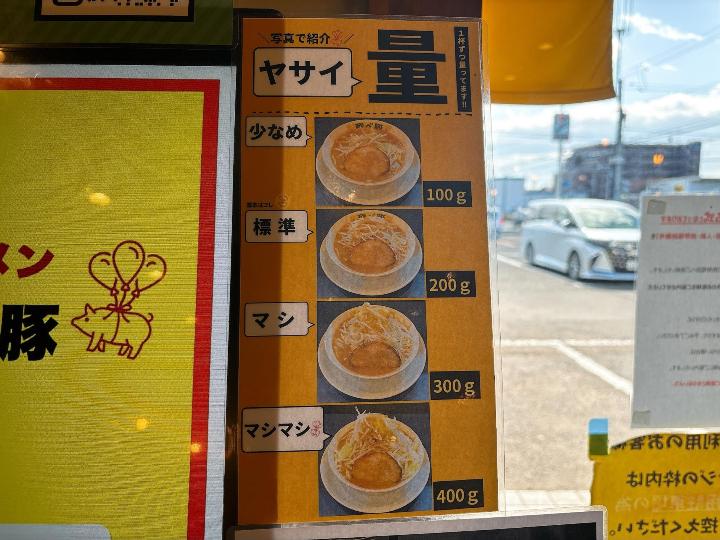 ヤサイやアブラなどの量も選べるのですが、券売機にはヤサイの量の目安が写真で表示されていて、とてもわかりやすかったです。