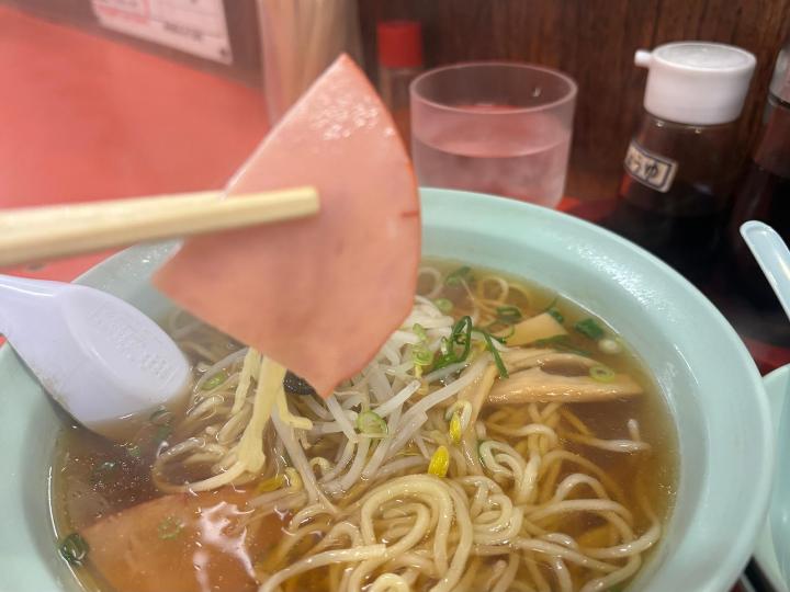 - ラーメンは懐かしい味でハム入り