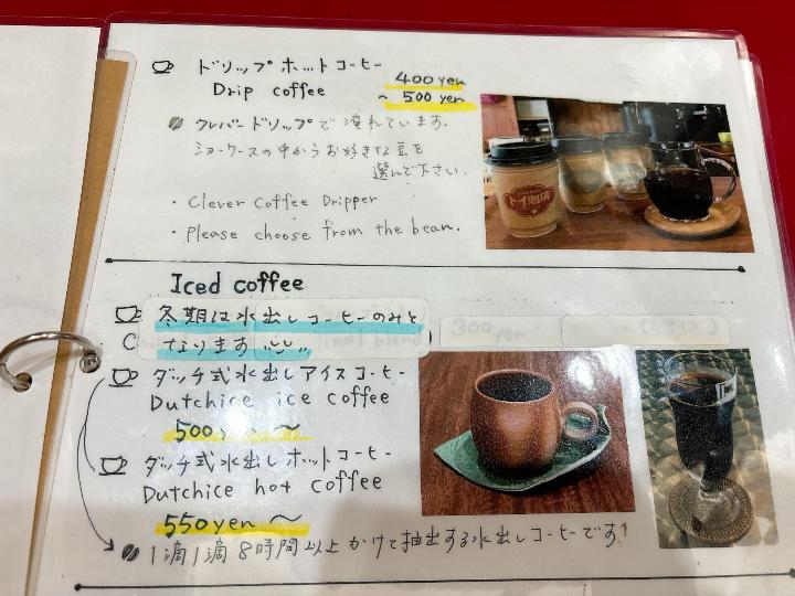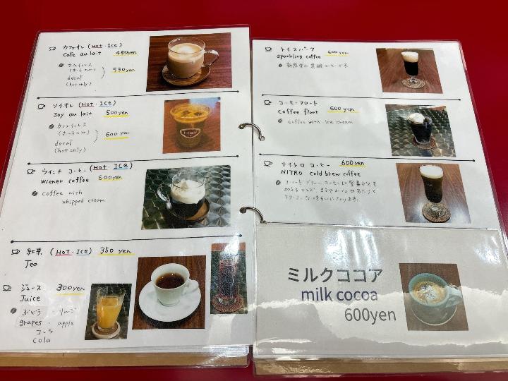 トイ珈琲のメニューはこのようになっています。(一部)