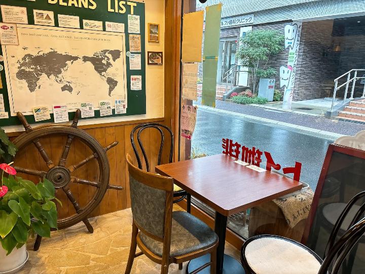 駅から近いですが、少し路地に入った落ち着いた場所にあり、ゆっくり珈琲が楽しめます。