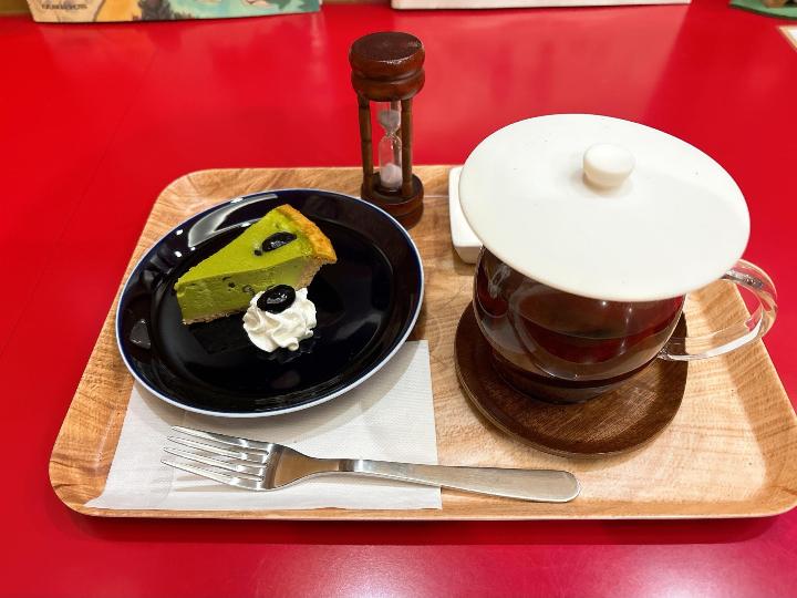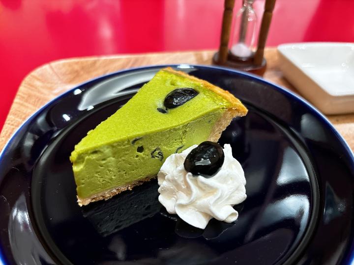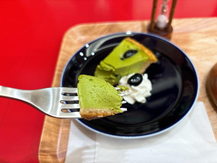 抹茶の爽やかな苦みと濃厚なチーズの味わいで、カスカラティーとの相性もよかったです。