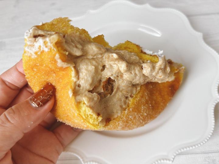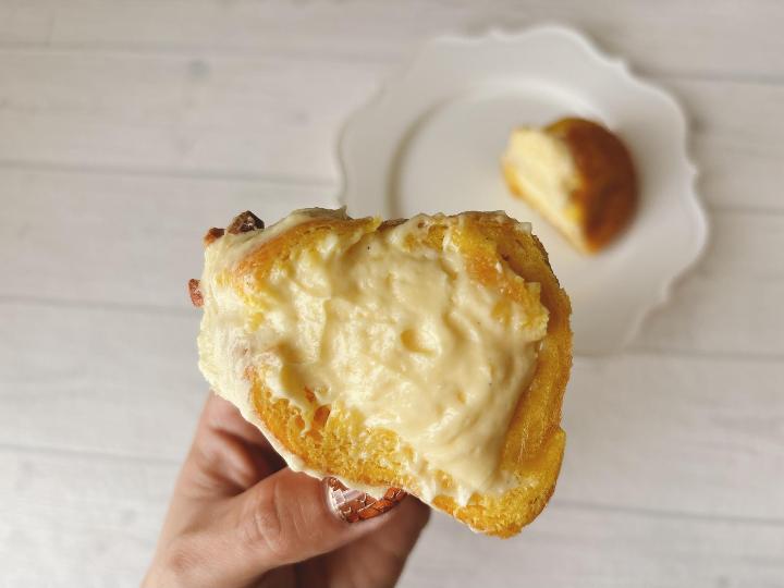 ふわっとやわらかい生地の中に、塩気のあるバニラクリームがたっぷり入っています。