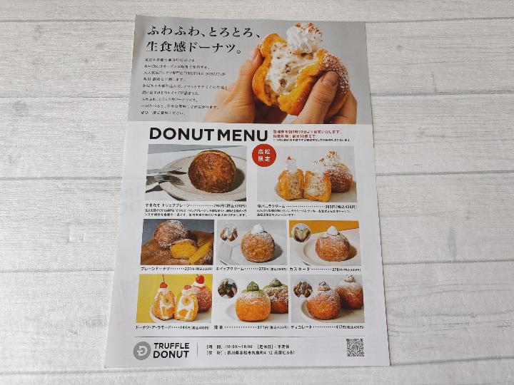 TRUFFLE DONUT 香川高松店のメニューはこのようになっています。(一部)