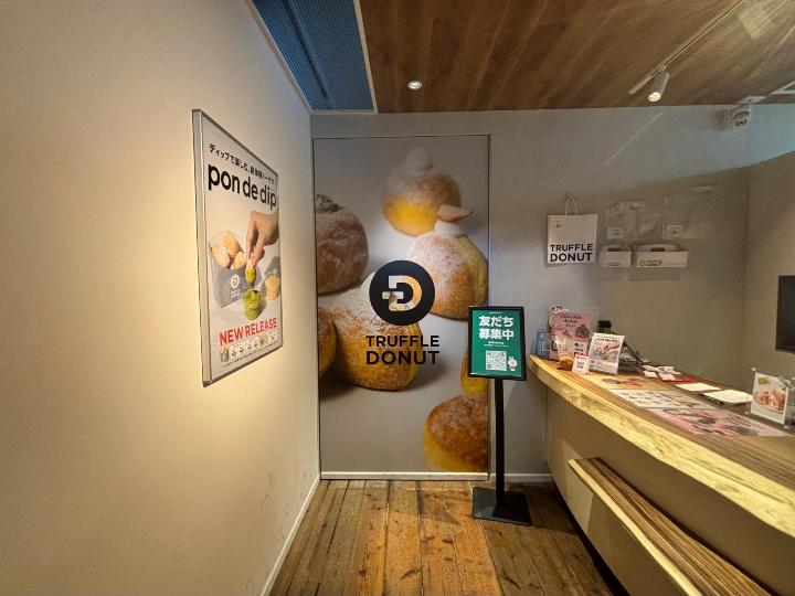 トリュフ風味のドーナツが話題のお店で、時間帯によっては行列ができるほど人気があります。