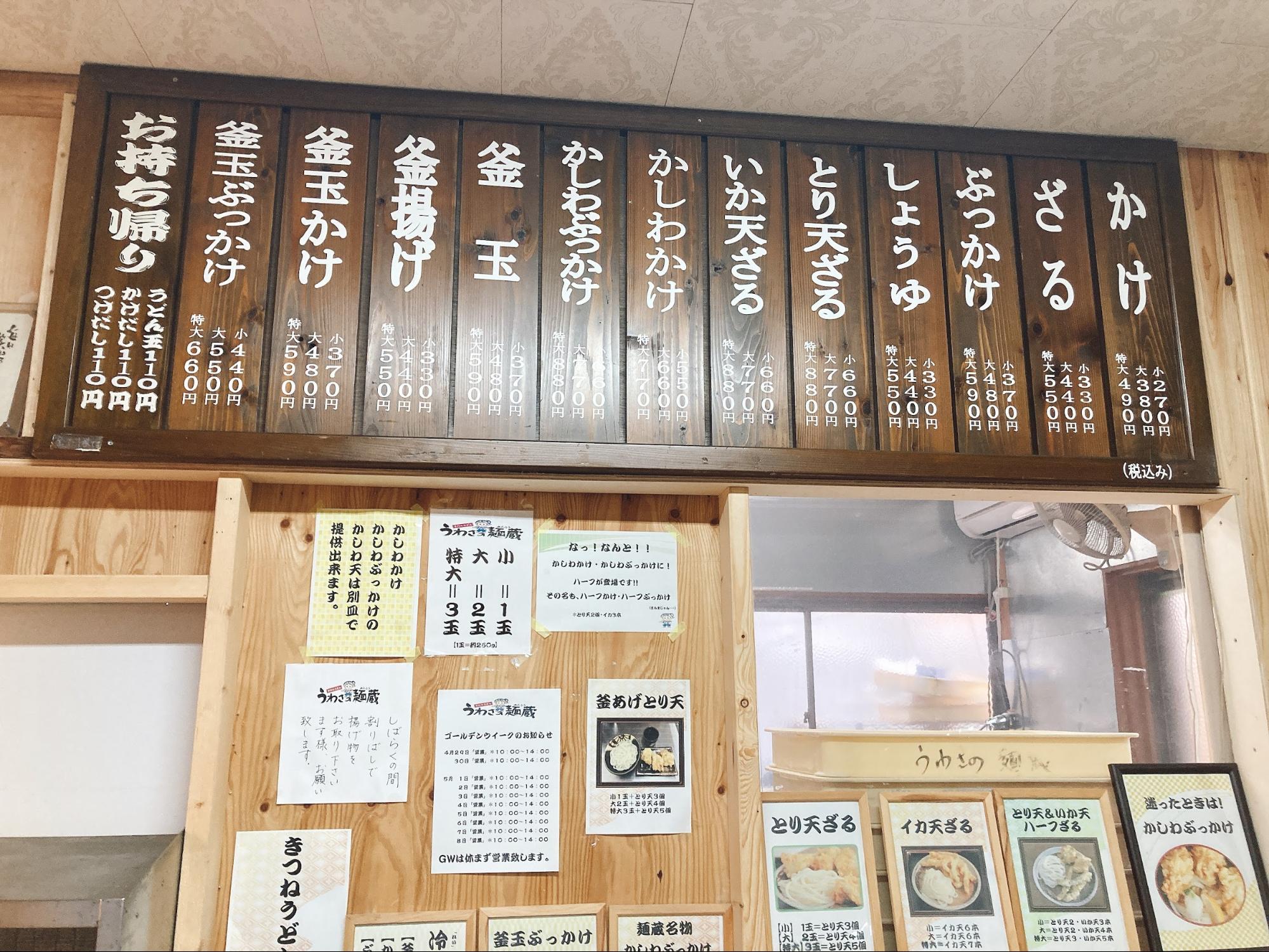 コシのあるモチモチ麺が特徴で、かしわ天が美味しい「うわさの麺蔵」へ食べに行ってみてはいかがでしょうか。