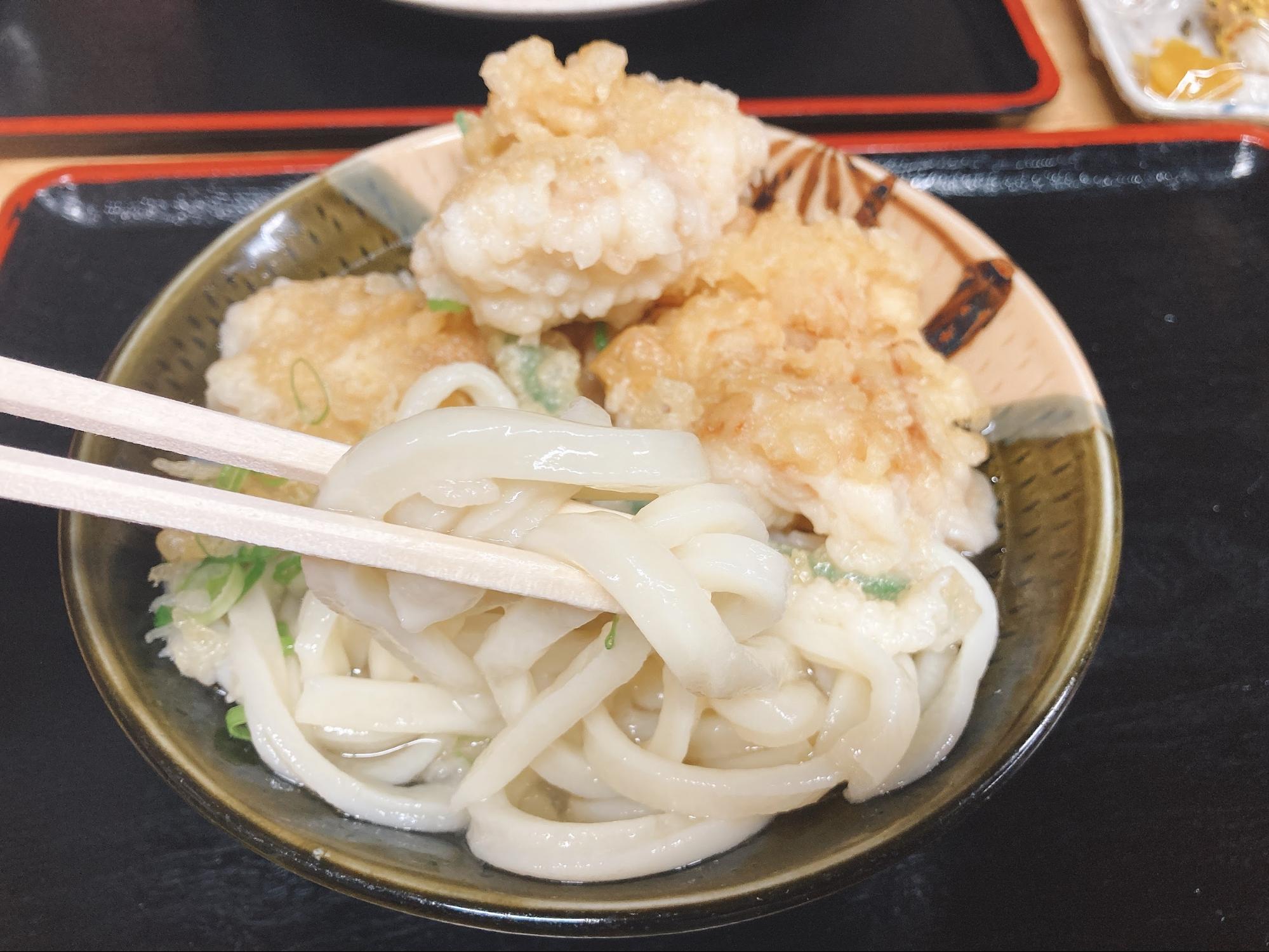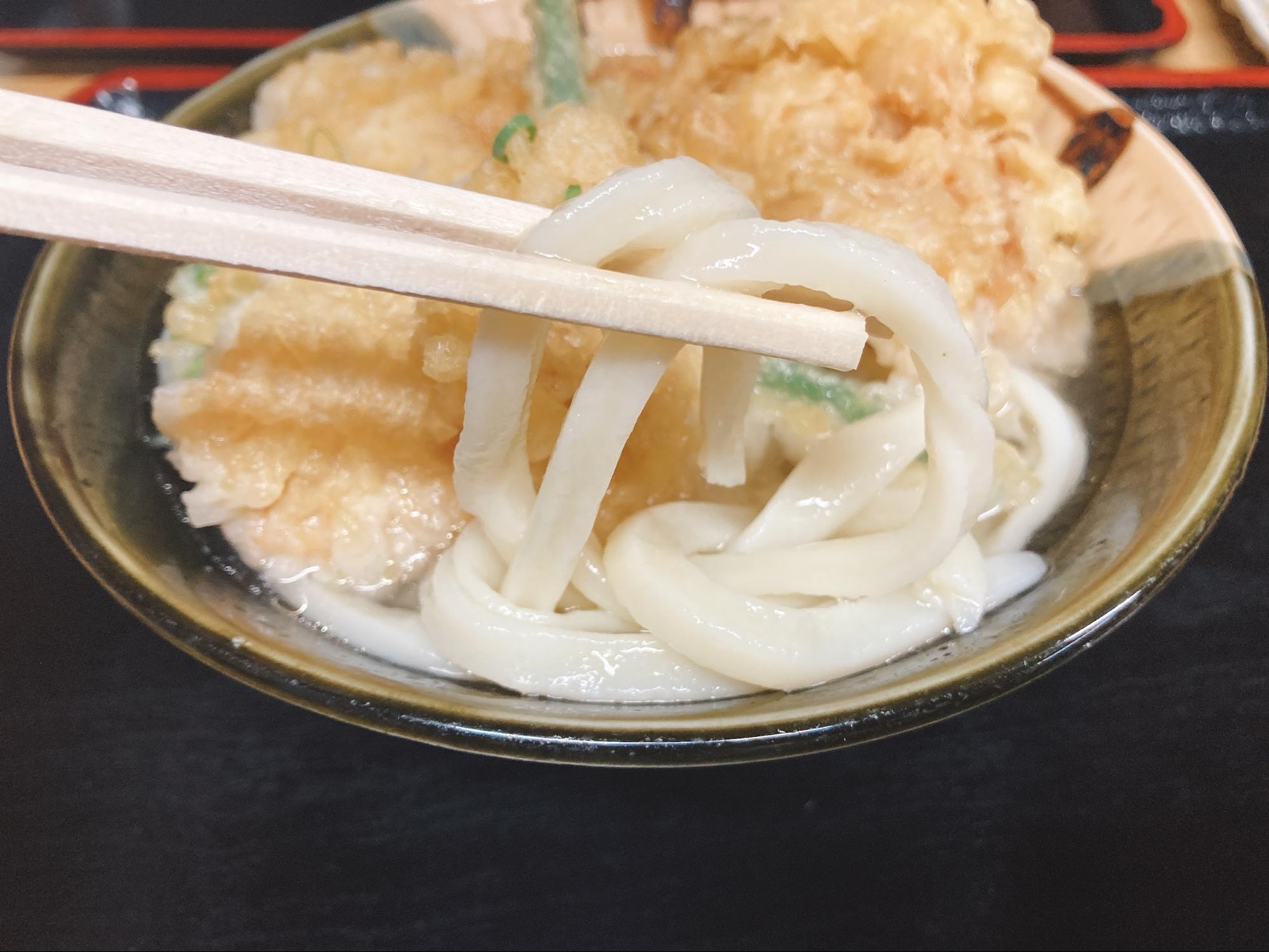 うどんは、コシが強めで麺がモチモチしています。