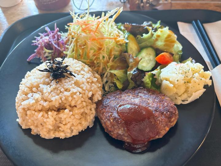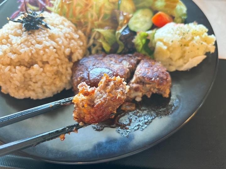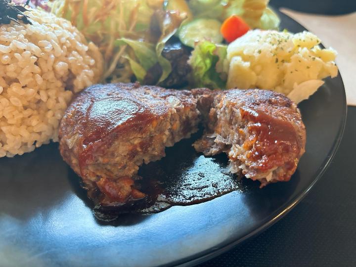 メインは3種類から選べて、あずきとオートミールのハンバーグを選びました。