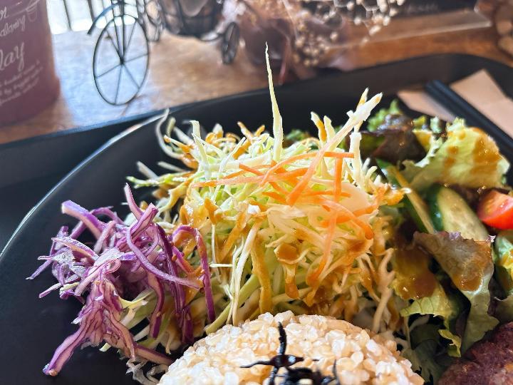 ワンプレートにはたっぷりの野菜が盛られていて、サラダもしっかり量があります。